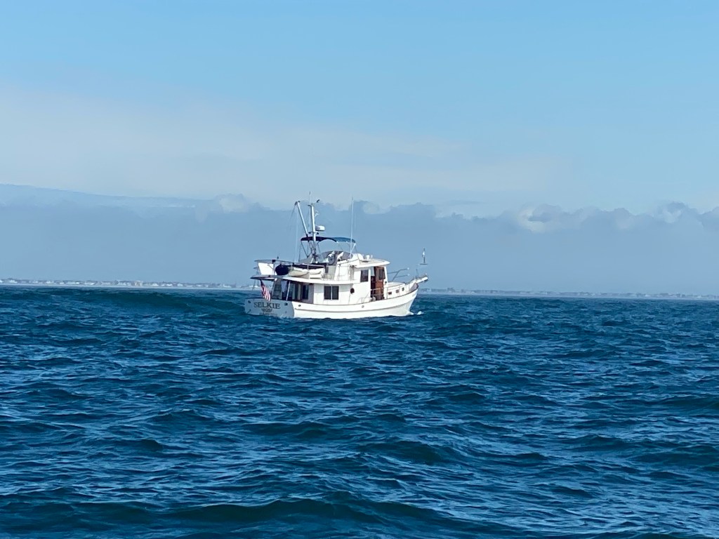 The waves were as predicted, except they got a little more aggressive as we turned towards the inlet to Atlantic City. They gradually grew to 6-7 footers as we got to shallow water, but Selkie surfed her way in without too much difficulty. The stabilizers performed beautifully.