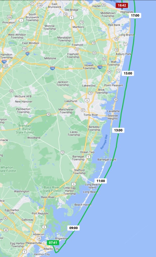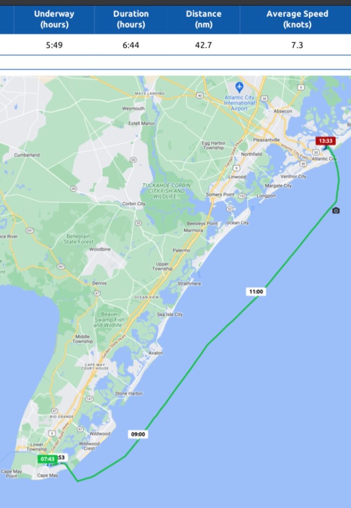 We left Cape May for Atlantic City, about 43 miles and 6 hours along the coast.