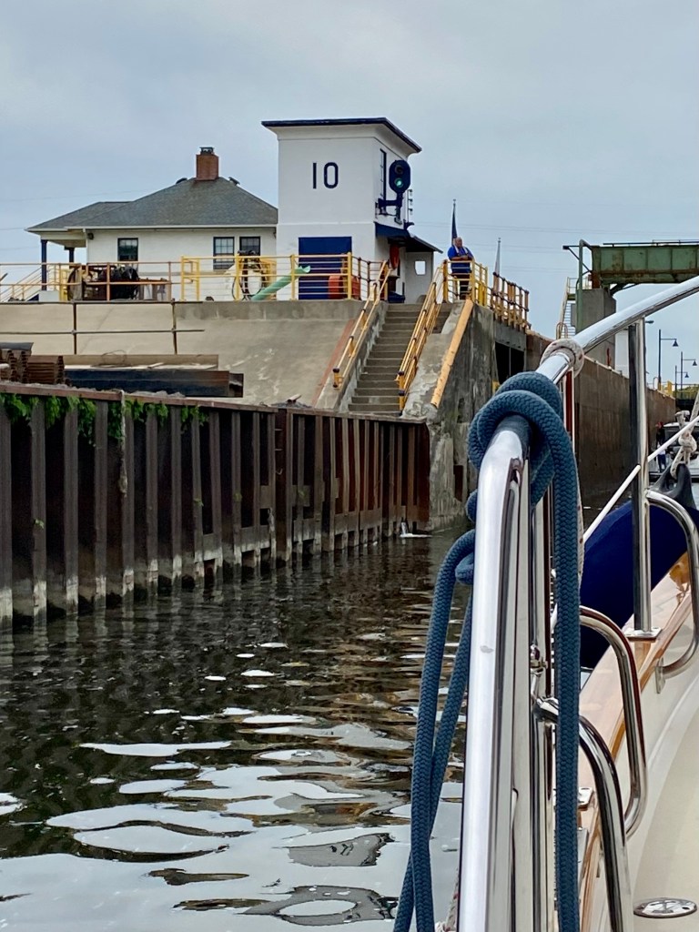 We gained quite a bit of experience handling Selkie going through the locks. Learning to manage 36,000 lbs or so of trawler has been a challenge.