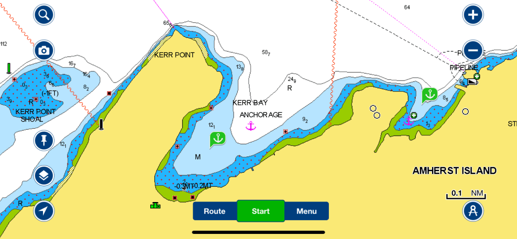 We motored a couple hours and stopped in Kerr Bay on the north side of Amherst Island west of Kingston.