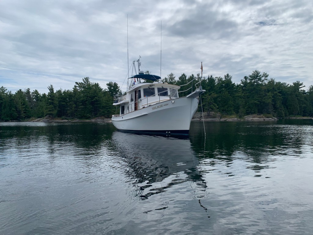 If you may recall, when we entered Canada, we anchored in Half Moon Bay in a wonderful setting. Libbie caught her first fish, a beautiful Northern Pike that was dinner.