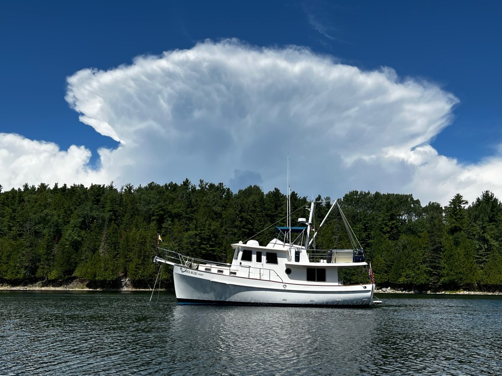 Snug Harbour was great, and aptly named. We saw one gust at 35 knots, which meant that we would have seen much stronger had we been in more unprotected waters.