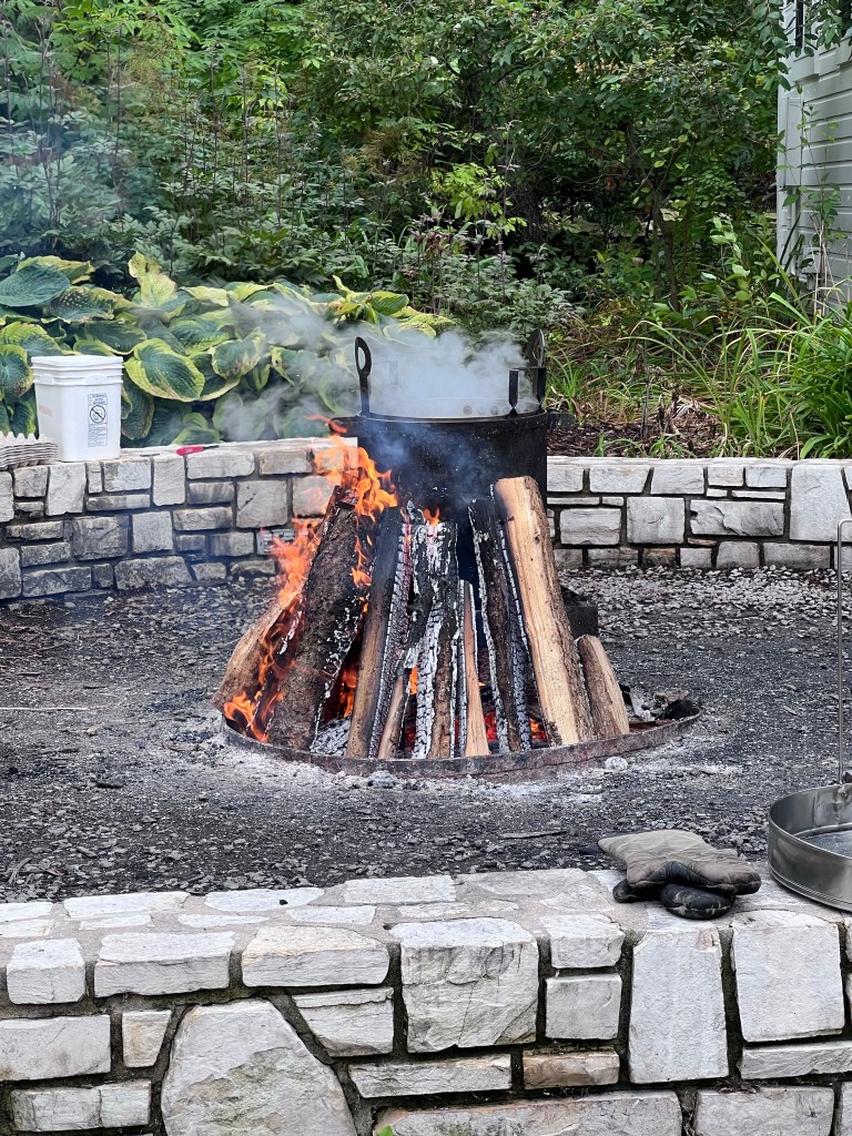 Part of the recipe calls for throwing a quart of kerosene on the fire at the end, which causes the pot to boil over and, in theory, get rid of all of the “bad stuff“ at the top of the boiling water.
