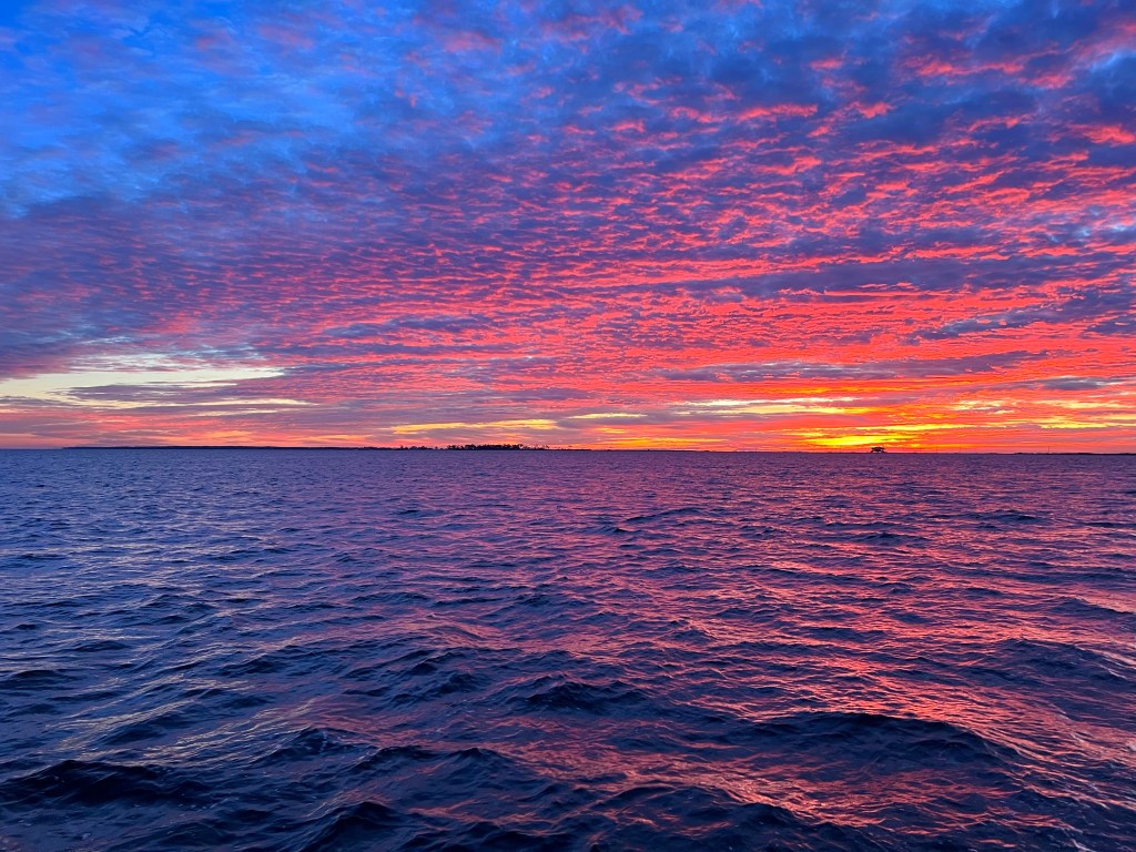Red sky at morning… it was a stunning sunrise but it gave us pause as we weighed anchor to head to Steinhatchee