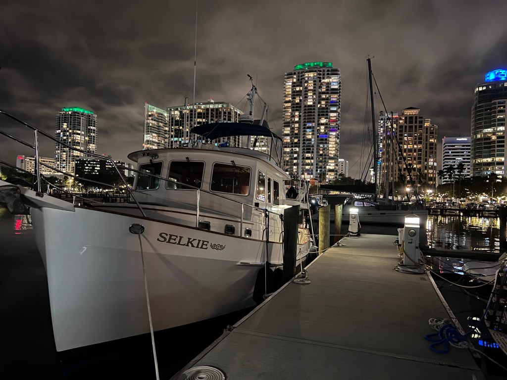 Selkie was moored at the Tarpon Springs municipal marina next to the sponge docks.