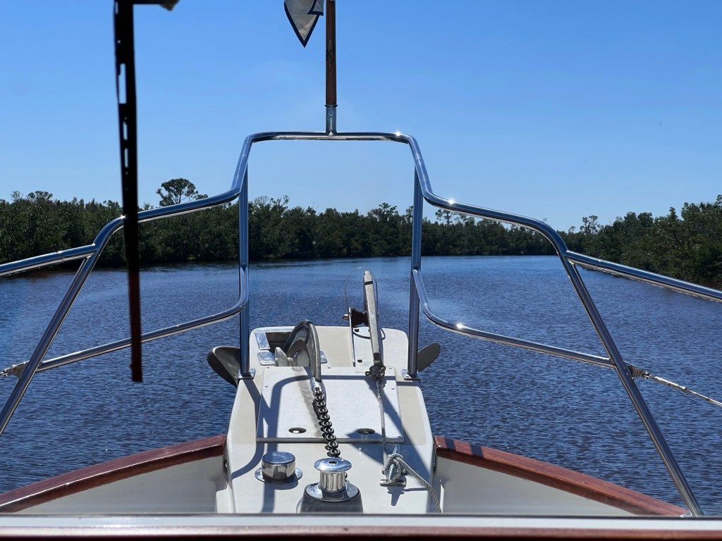 We left close to low tide, making sure we could make it with the water depths in Port Charlotte Harbor (which can be pretty shallow) and headed to the entrance to the canal that served the yard.