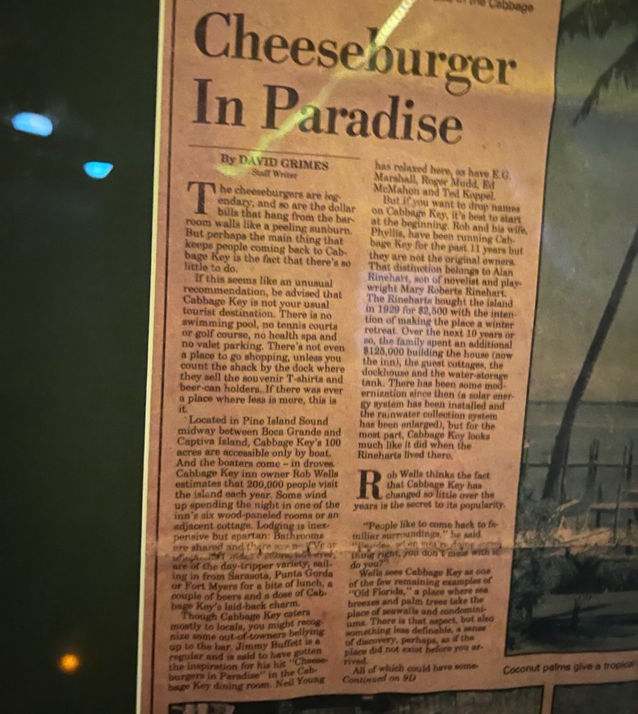 The next day, we headed to Cabbage Key, a legendary resort in the area, and one that you can visit to get a taste of what old Florida
