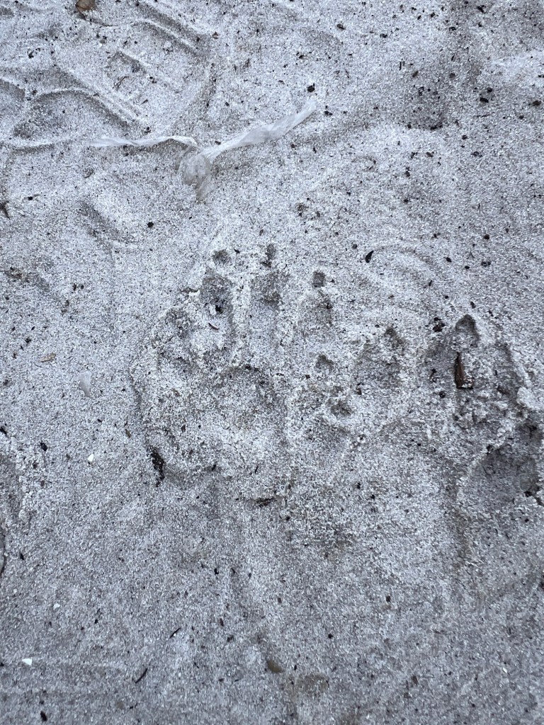 The paths on Cabbage Key are strewn with animal footprints. There are a lot of raccoon tracks around the cabins and outbuildings on the island as well as occasional lighter footprints of birds and lizards.