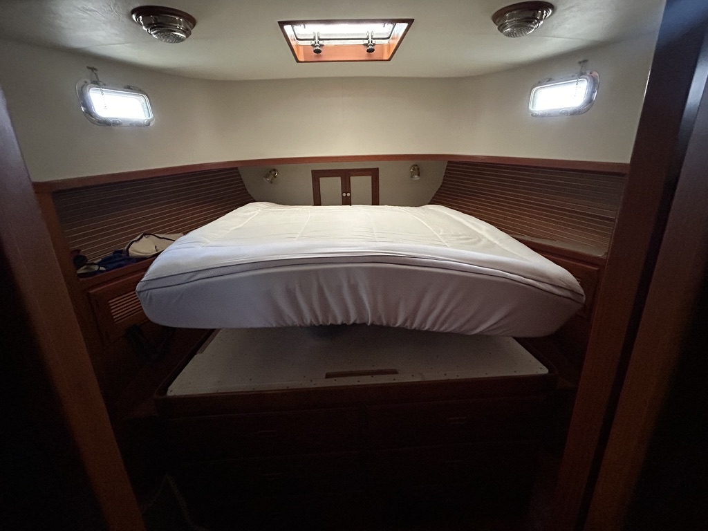 We positioned the mattress in our berth so that it would have air circulation around it… we don’t like moldy mattresses to sleep on.