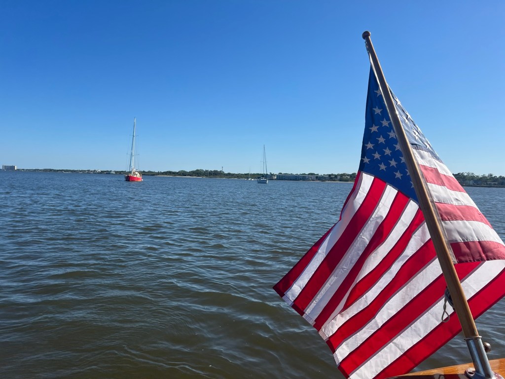 I found an anchorage that was convenient for both of us. We headed two hours north and dropped anchor close by a bridge right across from the Canaveral Barge Canal.