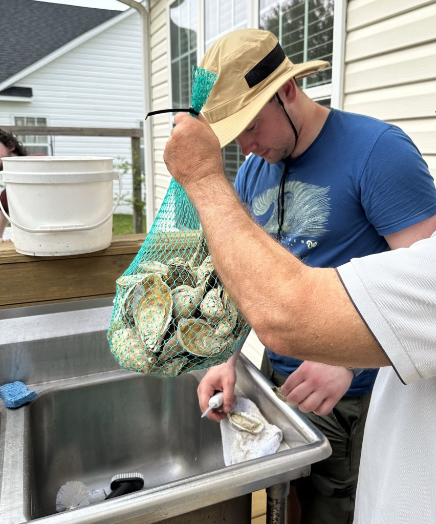 For the family reunion, my sister and I chipped in to buy 200 oysters.