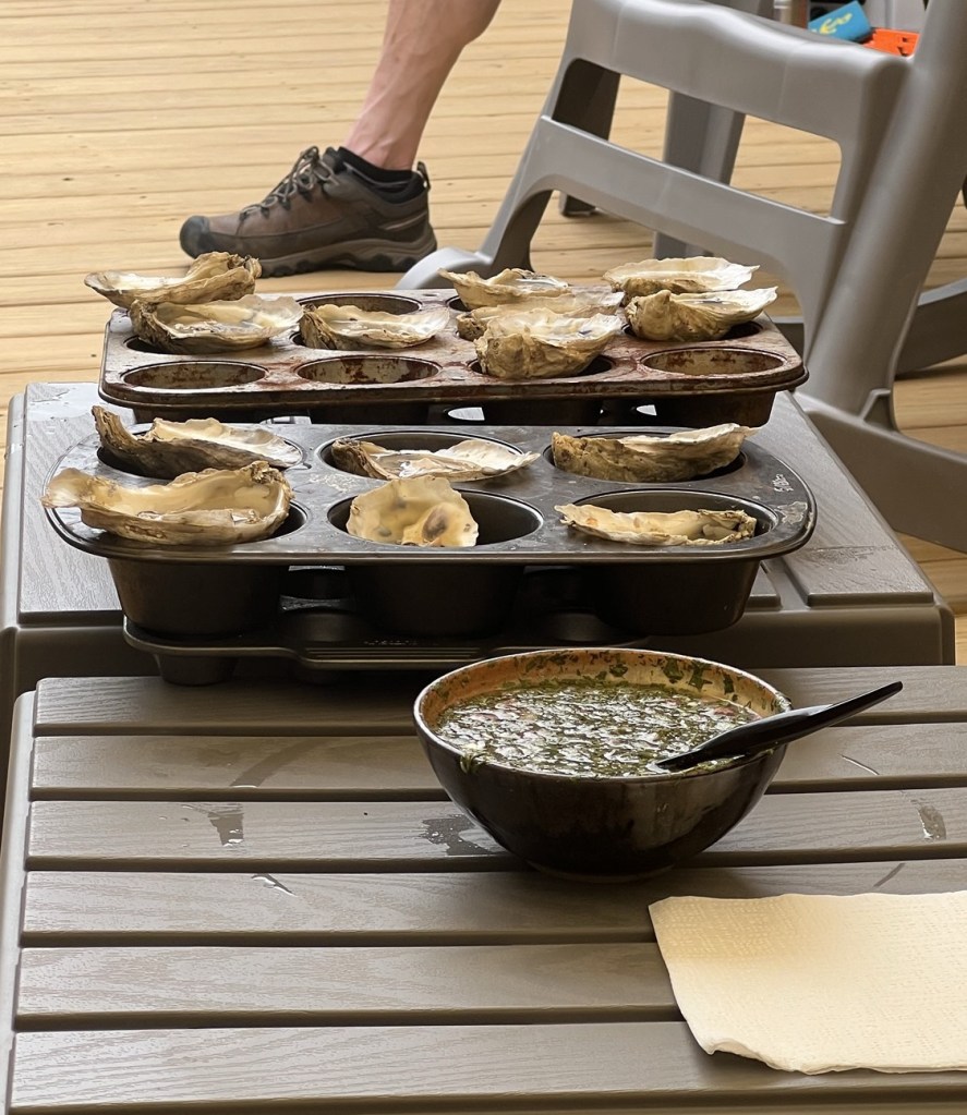 We had oysters shucked smoked grilled and otherwise consumed. There was enough of us to make those first 100 oysters disappear in the first 3 days… the rest took a bit more effort.